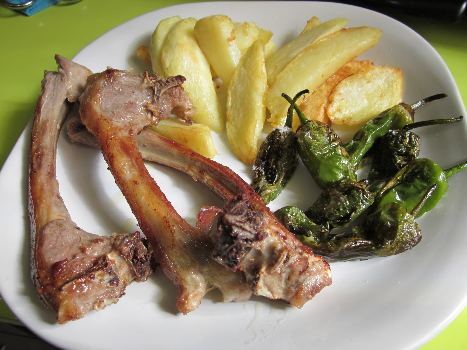 Así paso mis días.. Chuletas de Cordero con papas y pimientos del padron