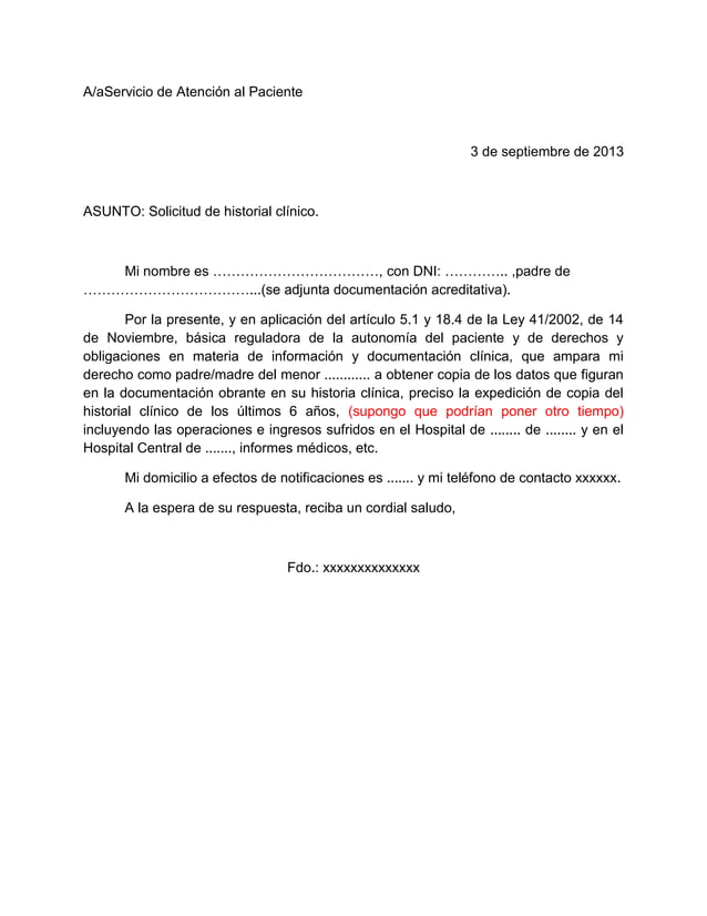 carta para solicitar el informe clínico