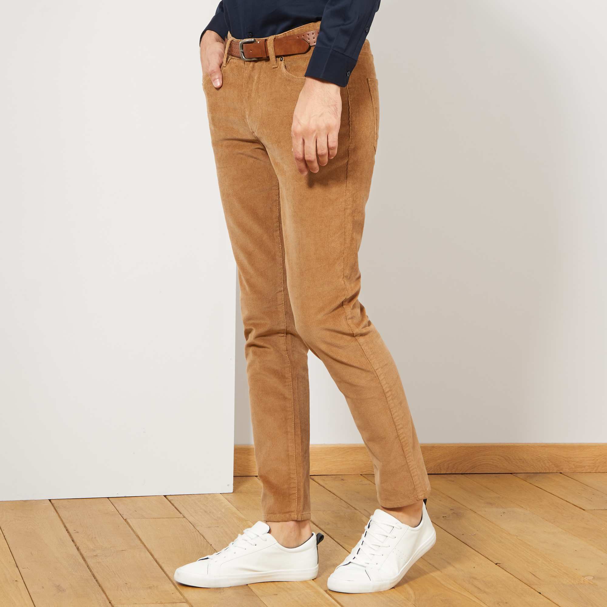 Pantalon slim en velours grosses côtes Homme beige Kiabi 25,00€